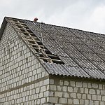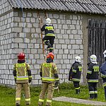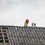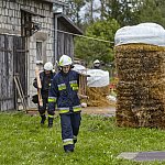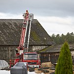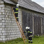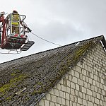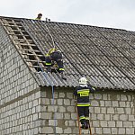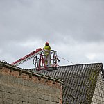 Na miejscu pracują cztery zastępy strażaków z PSP w Łomży oraz druhowie OSP. Zabezpieczają budynek blachą.