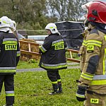 Cztery zastępy straży pożarnej usuwają skutki silnego wiatru w miejscowości Bacze Suche. Na jednej z posesji wiatr częściowo zerwał dachówkę z pomieszczenia gospodarczego.
