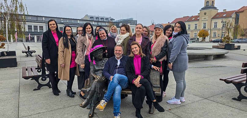Hanka Bielicka symbolicznie przypomina mieszkankom Łomży o konieczności regularnych badań profilaktycznych. Na jej charakterystycznym kapeluszu umieszczono różową wstążkę, będącą międzynarodowym symbolem walki z rakiem piersi. Akcja, zainicjowana przez Fundację L., ma na celu zwiększenie świadomości społecznej w ramach kampanii „Weź Wolne Od Raka”.