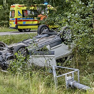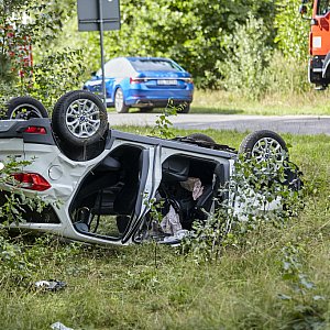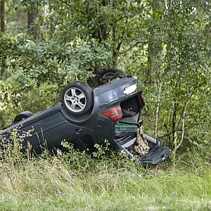 Całe zdarzenie wygląda bardzo groźnie. Po zderzeniu się oba pojazdy wypadły z drogi i dachowały.