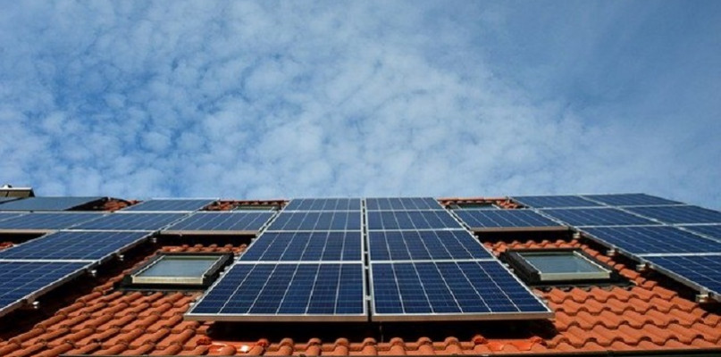 Panele fotowoltaiczne są instalowane na dachu budynku w celu wytwarzania energii elektrycznej. Panele te przekształcają światło słoneczne w użyteczną energię.
