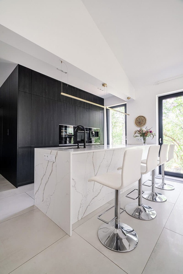 Konglomerat kwarcowy wyróżnia się niezwykle szeroką gamą kolorystyczną oraz różnorodnością faktur, co pozwala dopasować go do praktycznie każdej aranżacji wnętrza. Niezależnie od tego, czy preferujesz klasyczną elegancję, minimalistyczną prostotę, czy nowoczesne rozwiązania — konglomerat idealnie wpisuje się w każdy styl. Jego powierzchnia może być matowa, polerowana lub satynowa, co daje dodatkowe możliwości aranżacyjne. Blaty wykonane z tego materiału podkreślają charakter wnętrza i stają się jego centralnym punktem. Dzięki nowoczesnym technikom obróbki możliwe jest uzyskanie zarówno subtelnych wzorów inspirowanych naturą, jak i odważnych, designerskich rozwiązań. Kontin, jako firma z ogromnym doświadczeniem, potrafi idealnie wydobyć piękno materiału, dbając o każdy detal realizacji. To właśnie dlatego ich projekty wyróżniają się nie tylko funkcjonalnością, ale również wyjątkową estetyką.